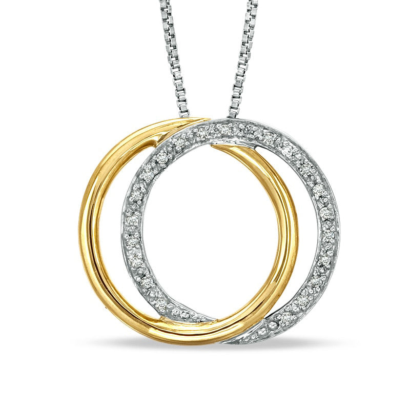 0.1 CT. T.W. Natural Diamond Interlocking Circle Pendant in Sterling Silver and 10K Yellow Gold