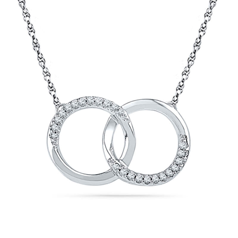 0.1 CT. T.W. Natural Diamond Interlocking Circles Necklace in 10K White Gold