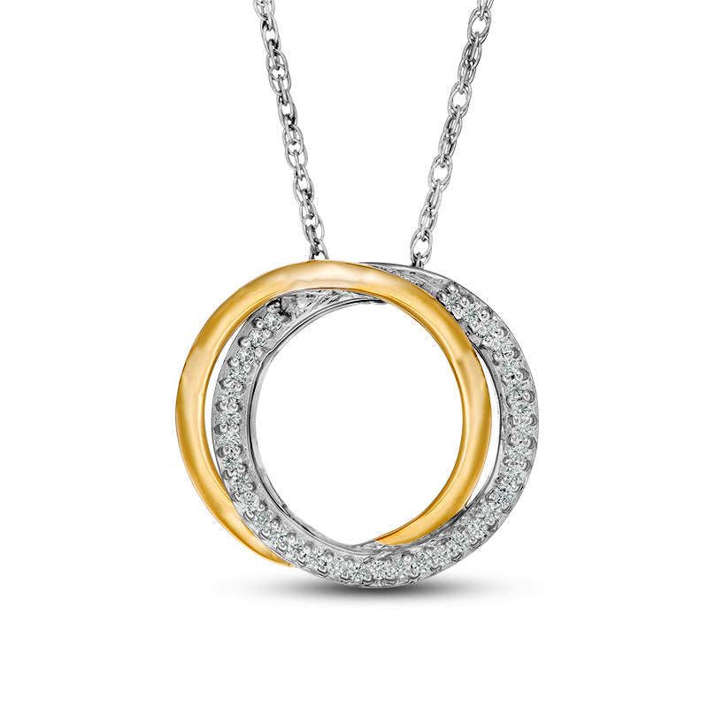 0.1 CT. T.W. Natural Diamond Interlocking Open Circles Pendant in Sterling Silver and 10K Yellow Gold