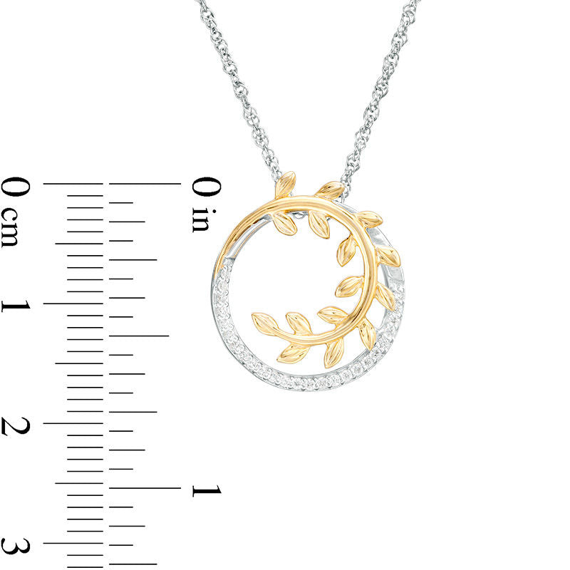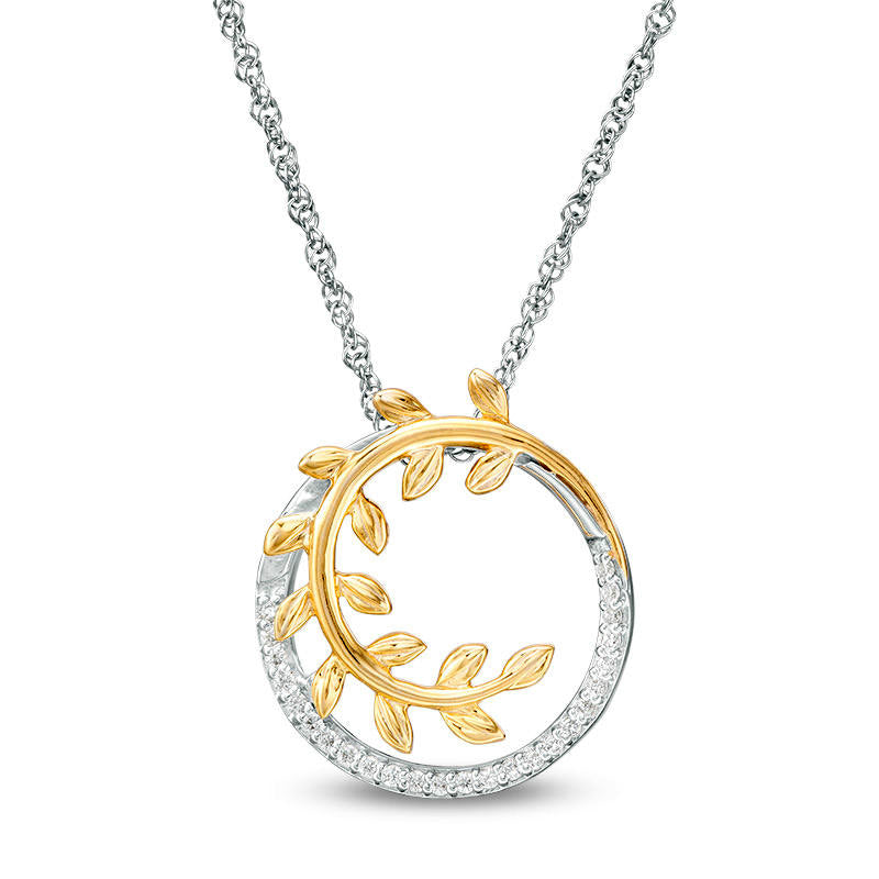0.1 CT. T.W. Natural Diamond Leaf Vine Circle Pendant in Sterling Silver and 10K Yellow Gold