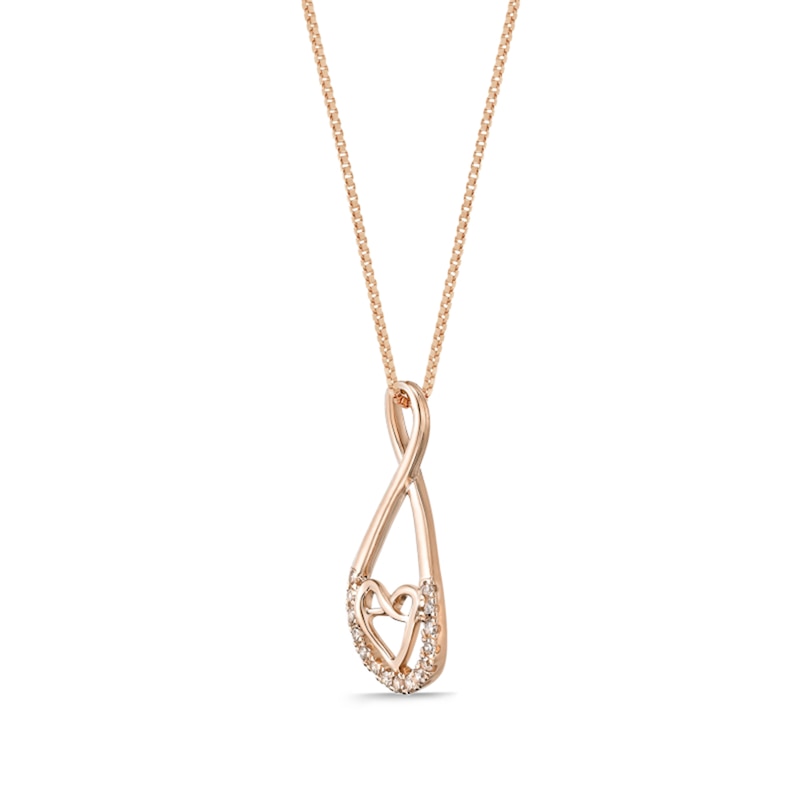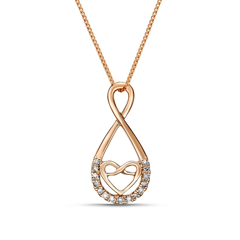 0.1 CT. T.W. Natural Diamond Linear Infinity with Heart Pendant in 10K Rose Gold