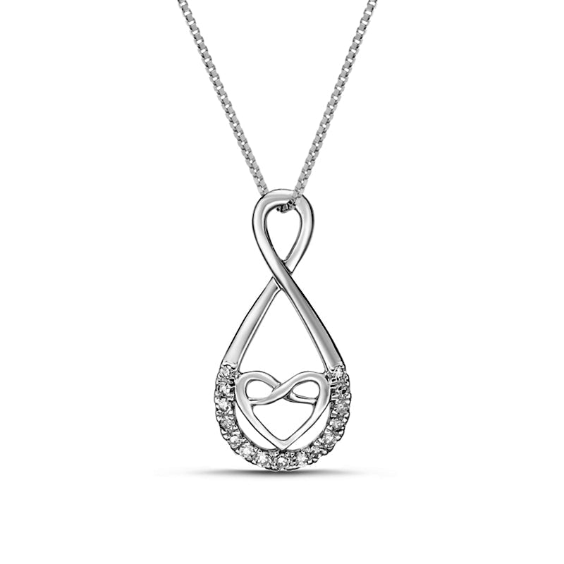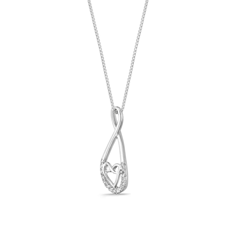 0.1 CT. T.W. Natural Diamond Linear Infinity with Heart Pendant in 10K White Gold