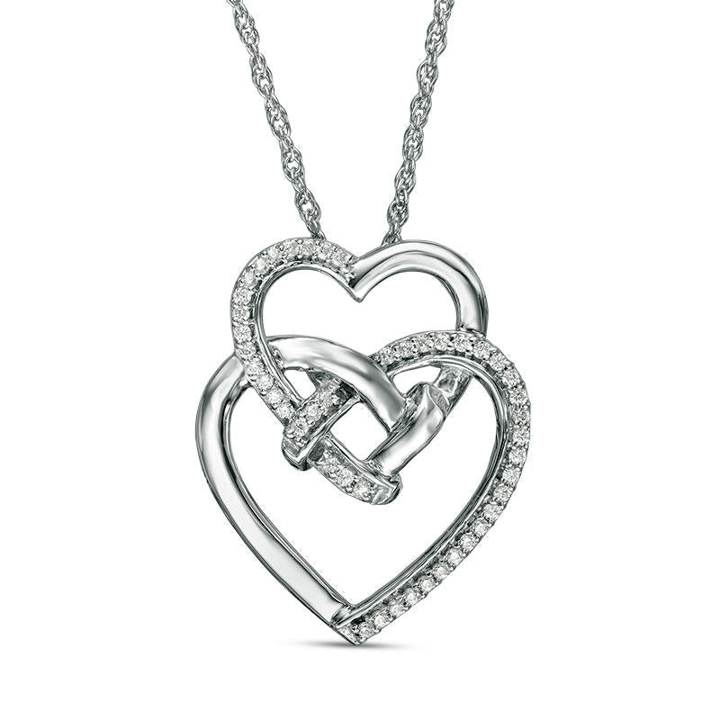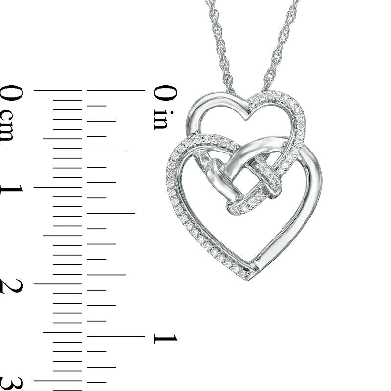 0.1 CT. T.W. Natural Diamond Love Knot Double Tilted Heart Pendant in Sterling Silver
