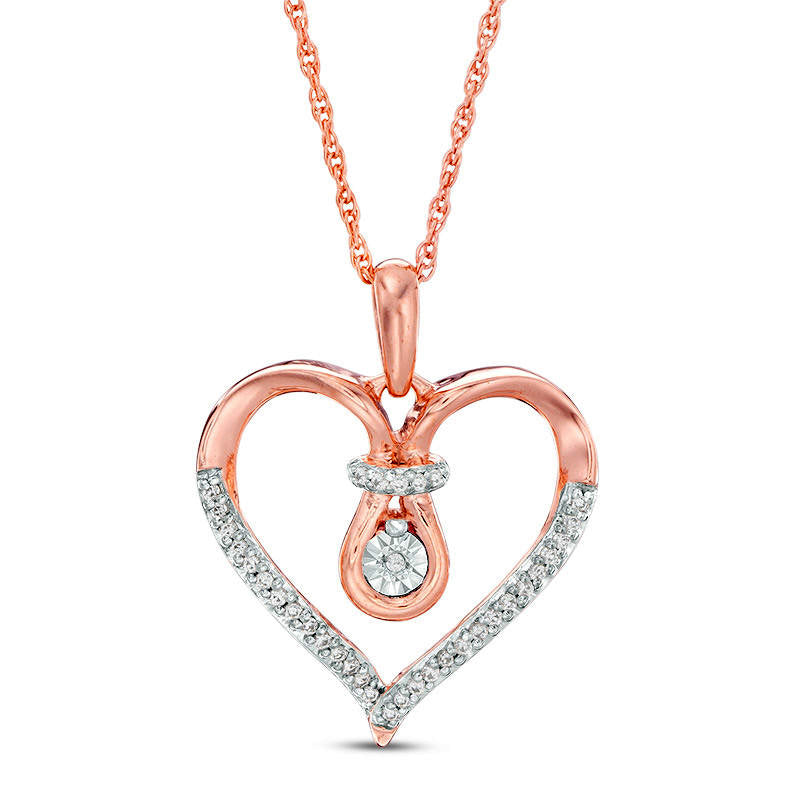 0.1 CT. T.W. Natural Diamond Love Knot Heart Pendant in 10K Rose Gold