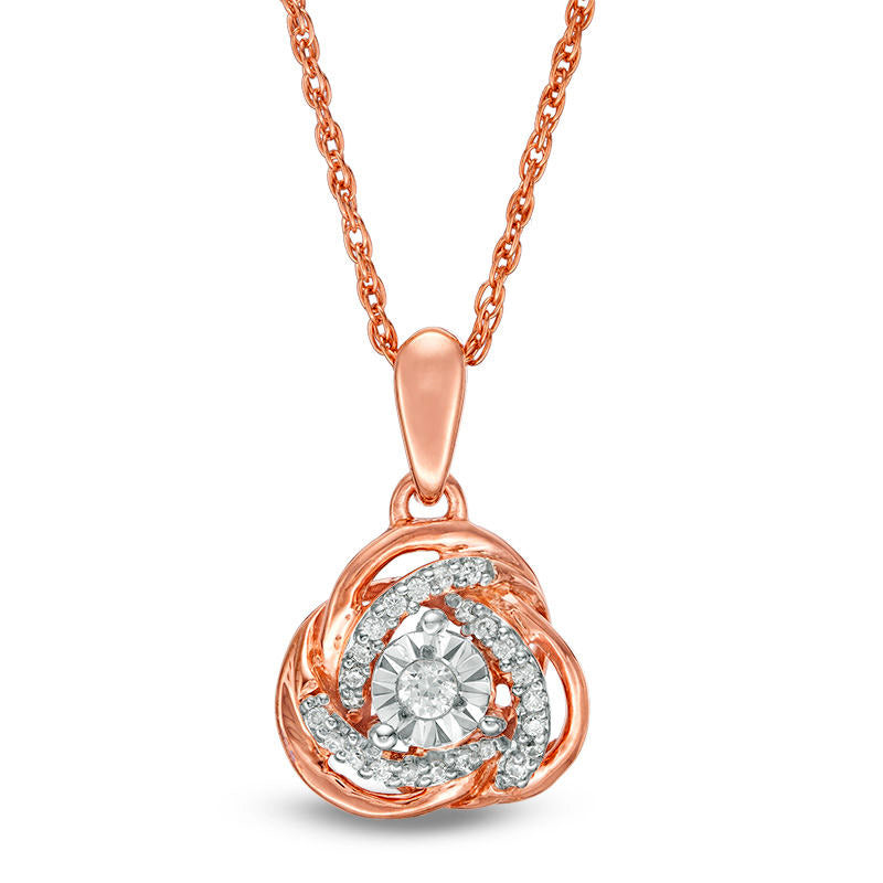 0.1 CT. T.W. Natural Diamond Love Knot Pendant in 10K Rose Gold