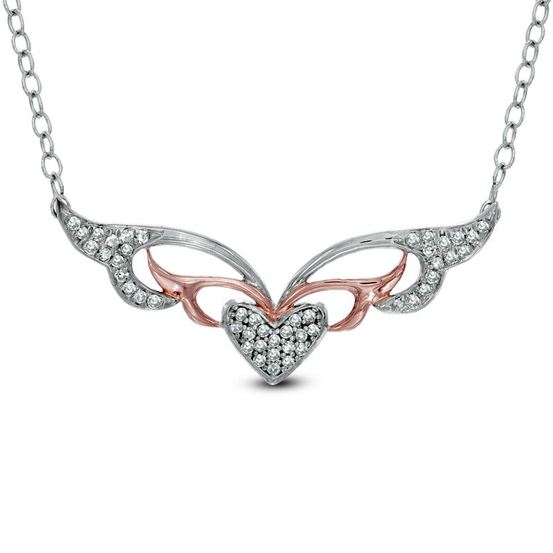 0.1 CT. T.W. Natural Diamond Masquerade-Style Heart Necklace in Two-Tone Sterling Silver