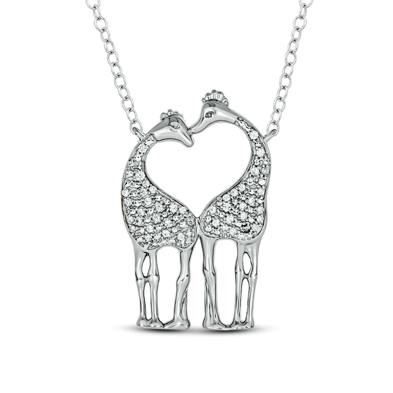 0.1 CT. T.W. Natural Diamond Motherly Love Giraffes Pendant in Sterling Silver