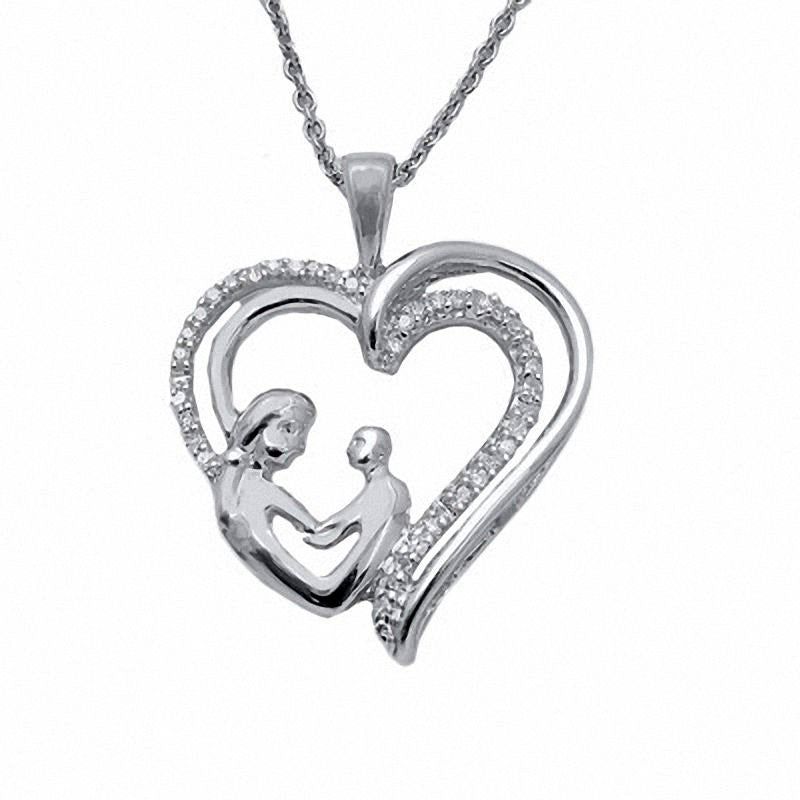 0.1 CT. T.W. Natural Diamond Motherly Love Pendant in Sterling Silver