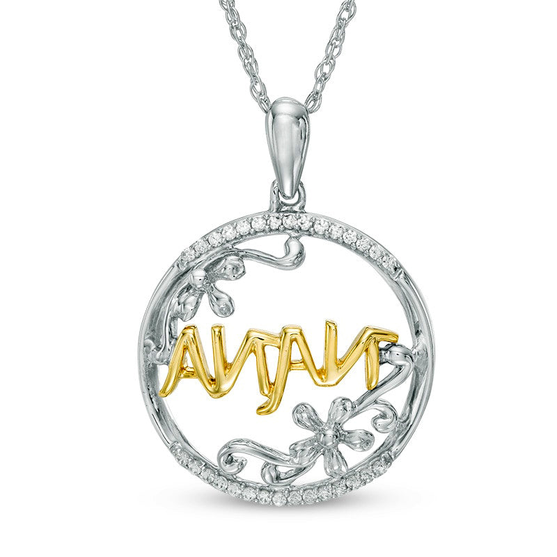 0.1 CT. T.W. Natural Diamond NANA" Flower Circle Pendant in Sterling Silver and 10K Yellow Gold"