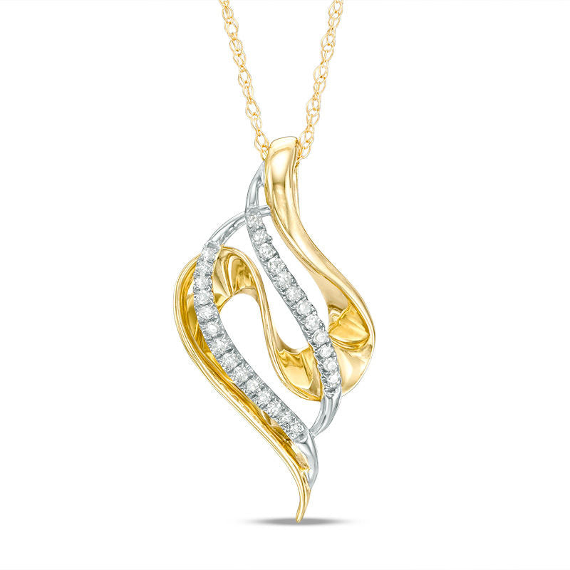 0.1 CT. T.W. Natural Diamond Open Curved Flame Pendant in 10K Two-Tone Gold