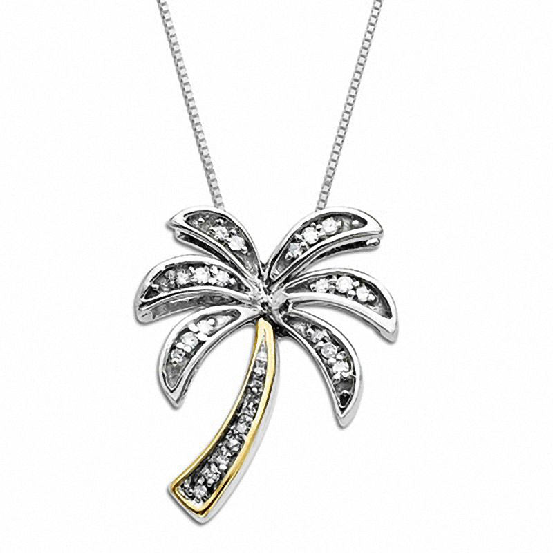 0.1 CT. T.W. Natural Diamond Palm Tree Necklace in Sterling Silver and 14K Gold