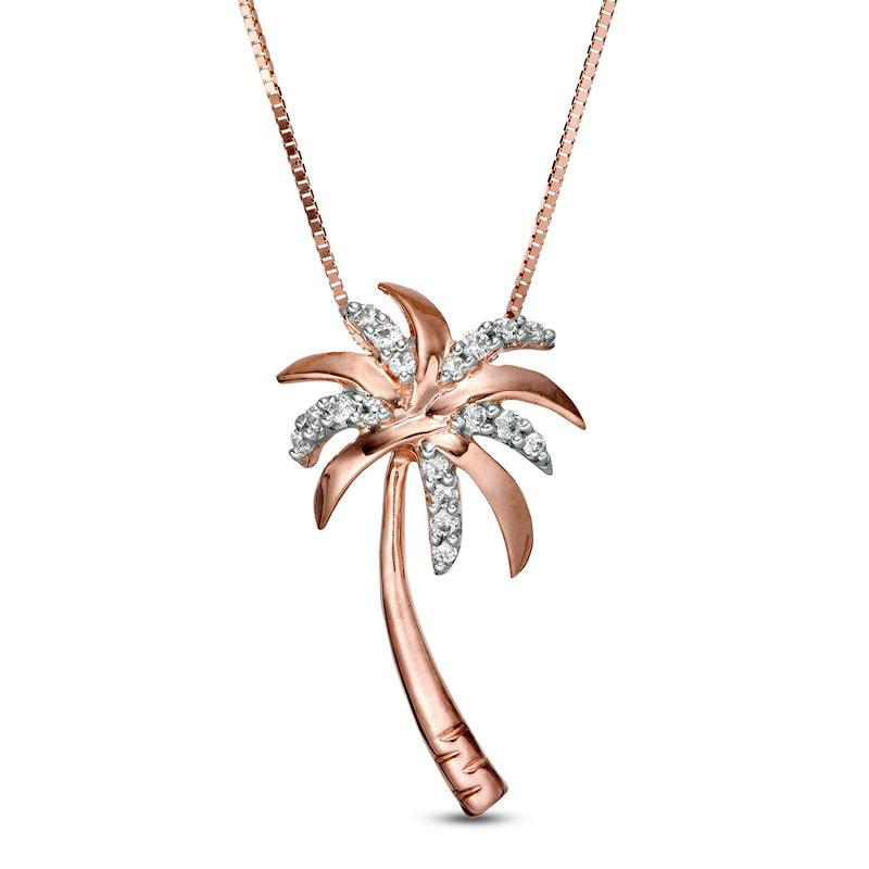 0.1 CT. T.W. Natural Diamond Palm Tree Pendant in 10K Rose Gold