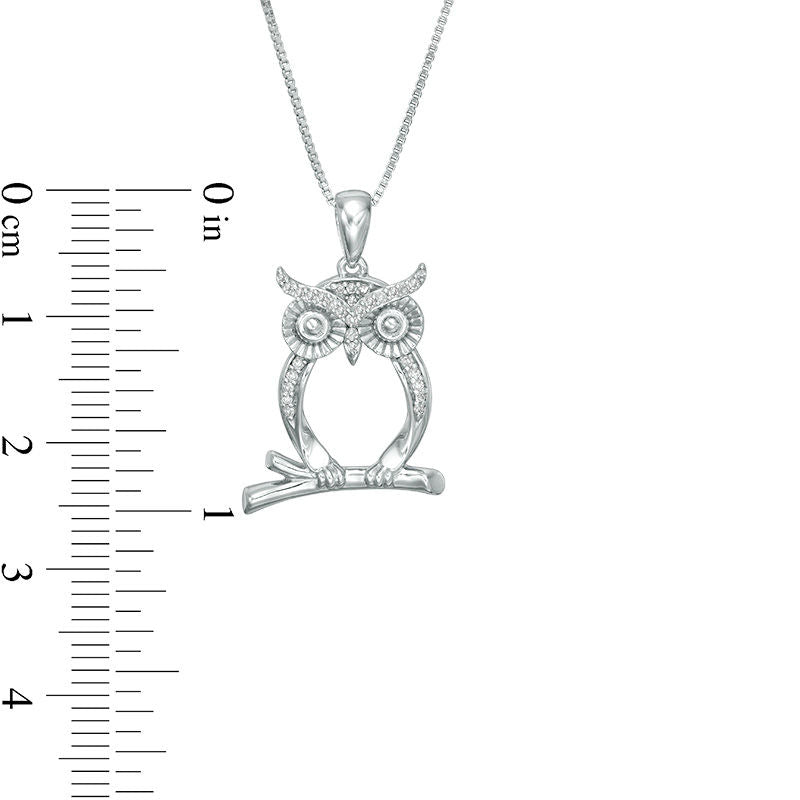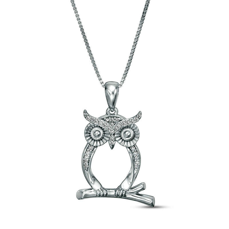 0.1 CT. T.W. Natural Diamond Perched Owl Outline Pendant in Sterling Silver