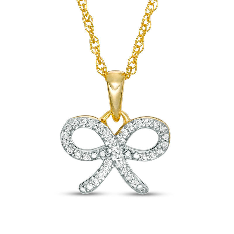 0.1 CT. T.W. Natural Diamond Ribbon Bow Pendant in 10K Yellow Gold