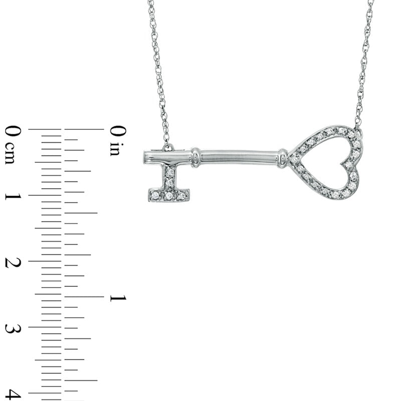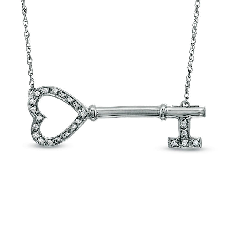 0.1 CT. T.W. Natural Diamond Sideways Heart-Top Key Necklace in Sterling Silver
