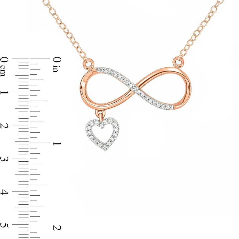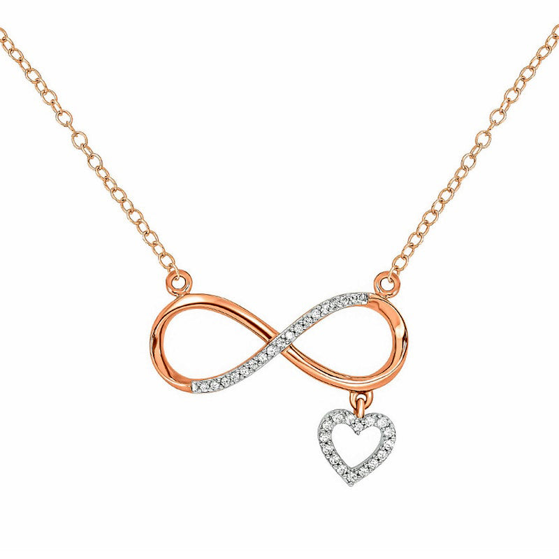 0.1 CT. T.W. Natural Diamond Sideways Infinity with Heart Dangle Necklace in 10K Rose Gold
