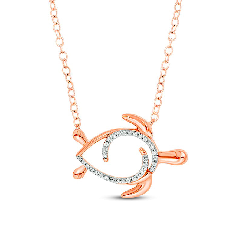 0.1 CT. T.W. Natural Diamond Sideways Turtle Necklace in Sterling Silver with 14K Rose Gold Plate
