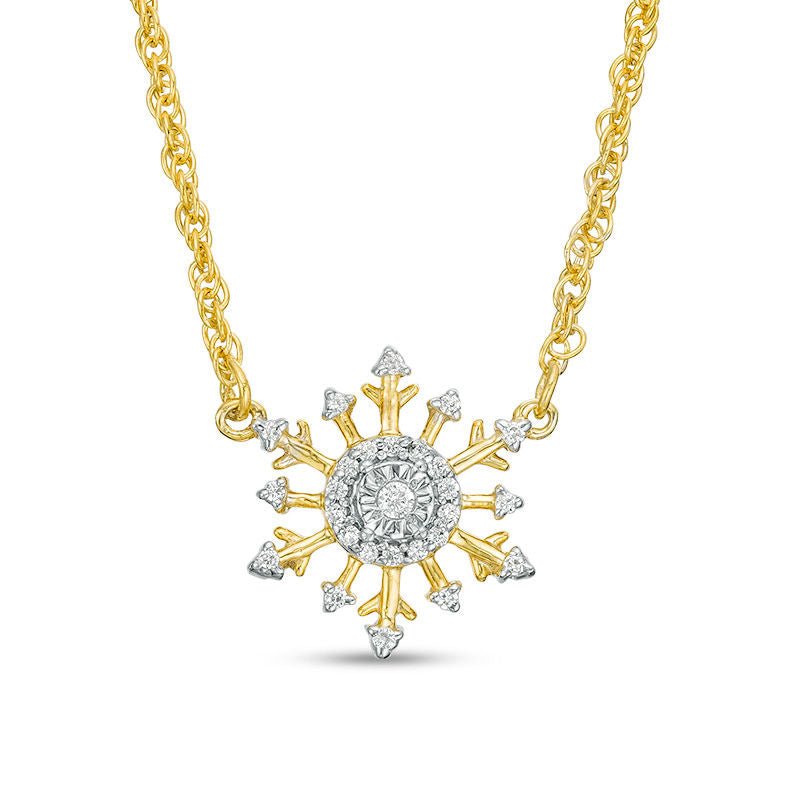 0.1 CT. T.W. Natural Diamond Snowflake Necklace in Sterling Silver and 14K Gold Plate
