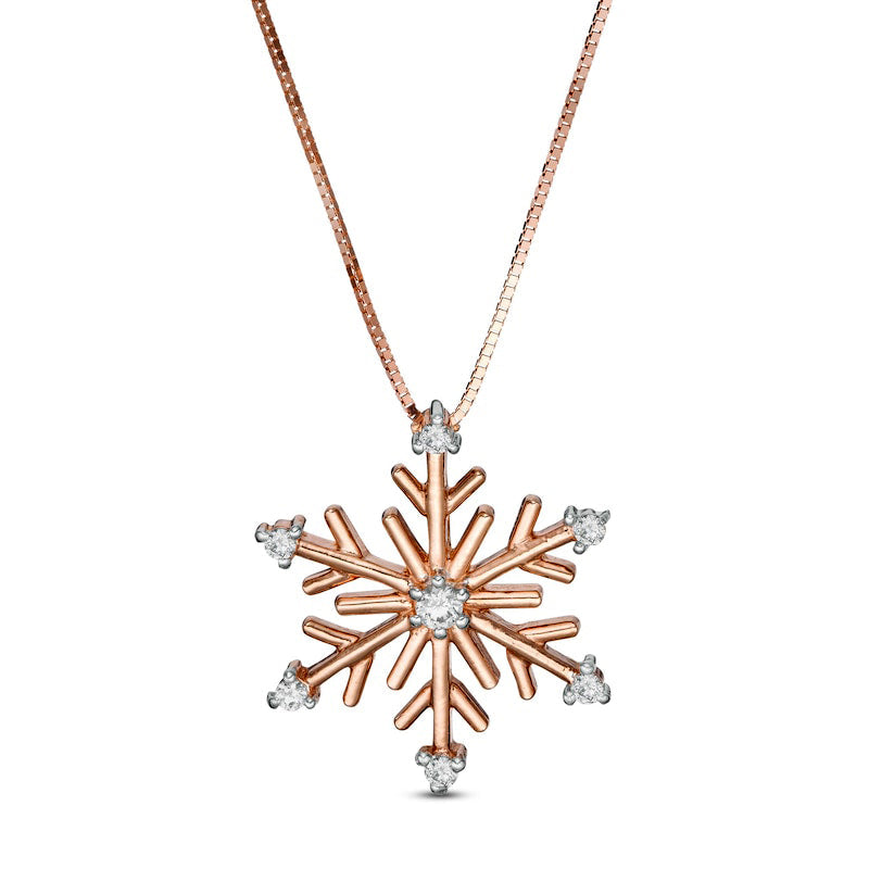 0.1 CT. T.W. Natural Diamond Snowflake Pendant in 10K Rose Gold
