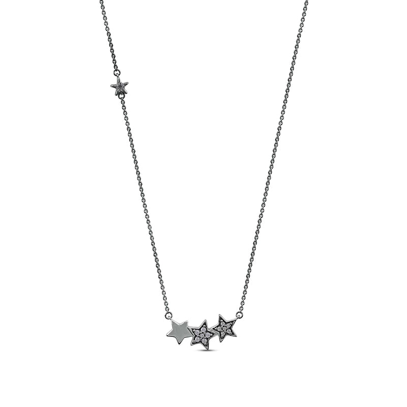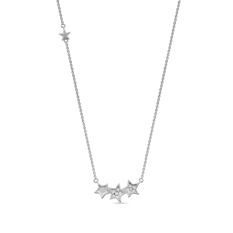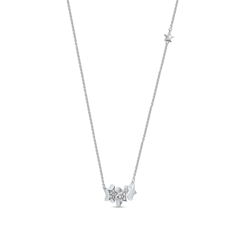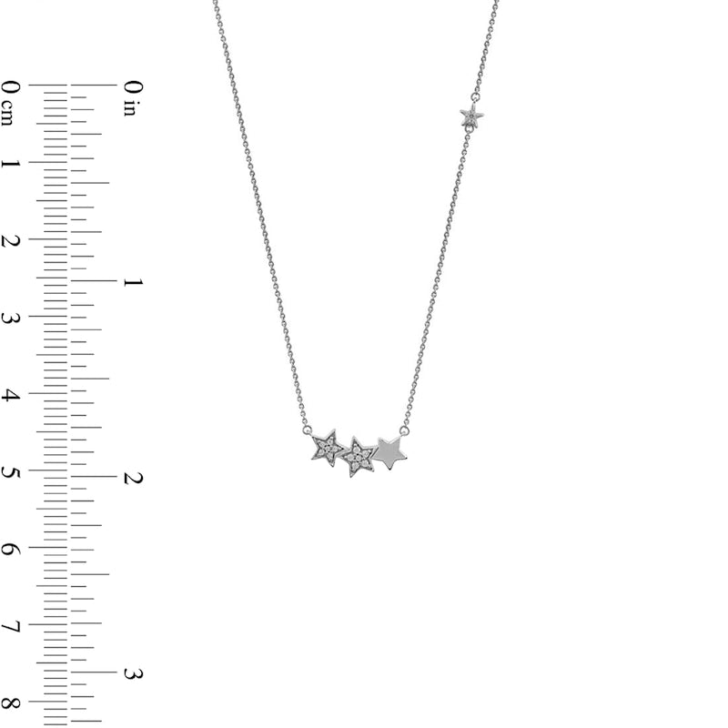 0.1 CT. T.W. Natural Diamond Star Trio with Offset Accent Celestial Necklace in Sterling Silver
