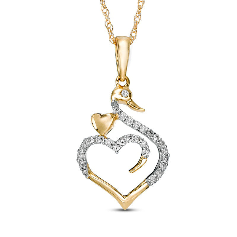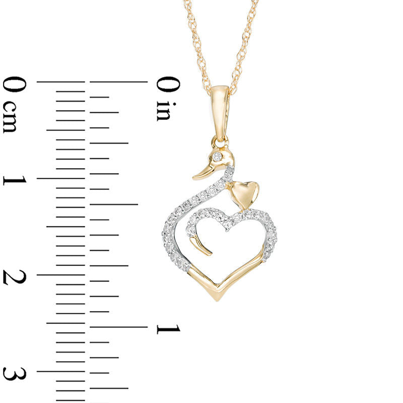 0.1 CT. T.W. Natural Diamond Swan Heart Pendant in 10K Yellow Gold