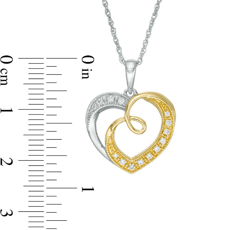 0.1 CT. T.W. Natural Diamond Swirl Double Heart Pendant in Sterling Silver with 14K Gold Plate