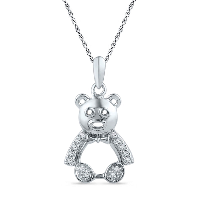 0.1 CT. T.W. Natural Diamond Teddy Bear Pendant in Sterling Silver