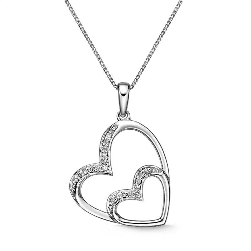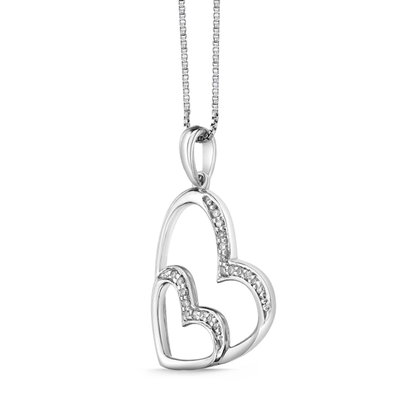 0.1 CT. T.W. Natural Diamond Tilted Double Heart Pendant in Sterling Silver