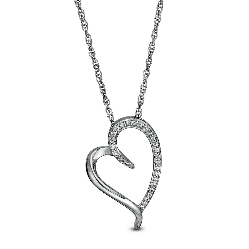0.1 CT. T.W. Natural Diamond Tilted Elongated Heart Pendant in 10K White Gold
