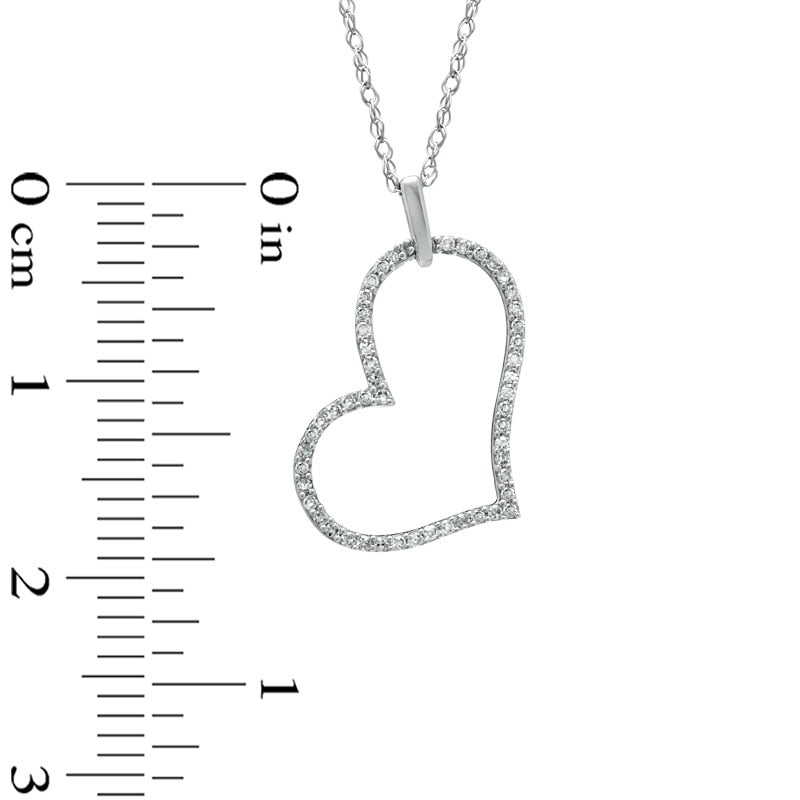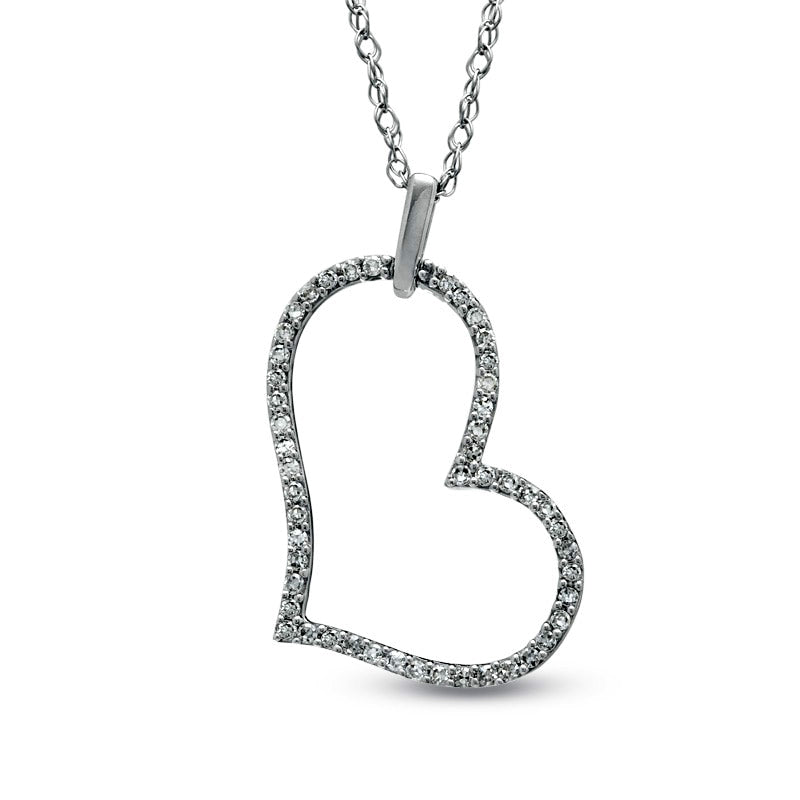 0.1 CT. T.W. Natural Diamond Tilted Heart Outline Pendant in 10K White Gold