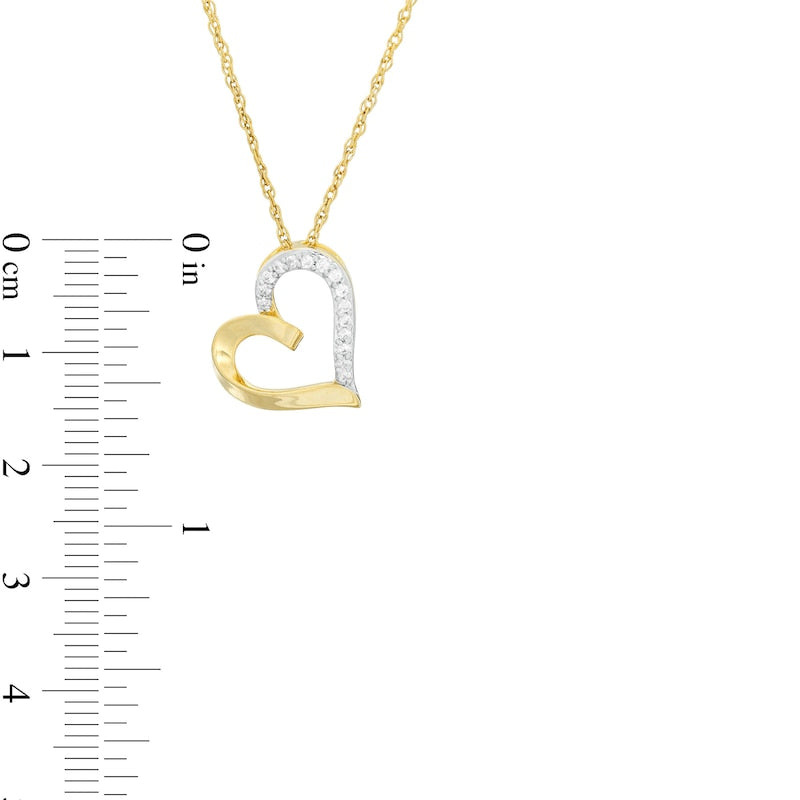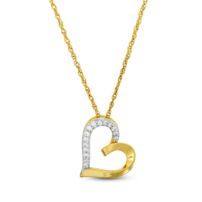 0.1 CT. T.W. Natural Diamond Tilted Heart Pendant in 10K Yellow Gold