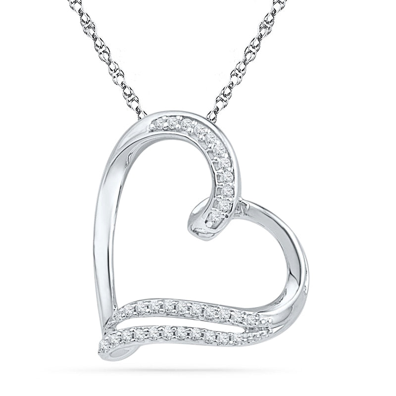 0.1 CT. T.W. Natural Diamond Tilted Heart Pendant in Sterling Silver