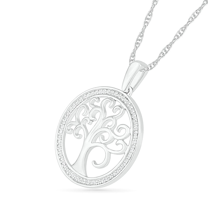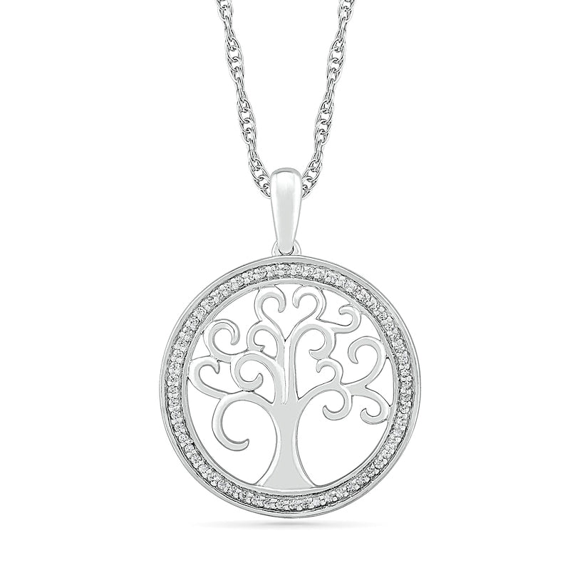 0.1 CT. T.W. Natural Diamond Tree of Life Pendant in Sterling Silver