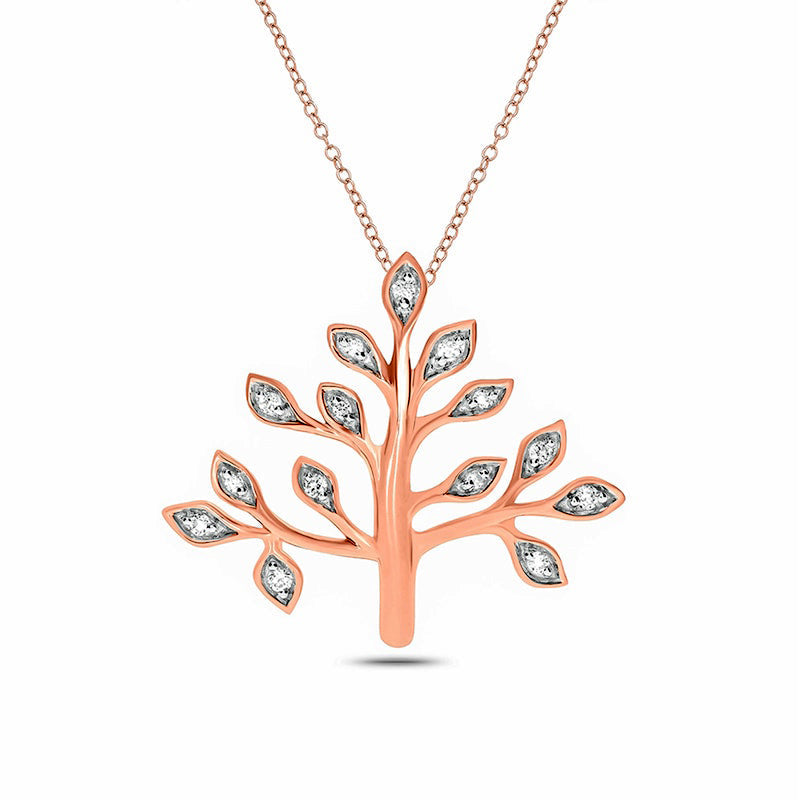 0.1 CT. T.W. Natural Diamond Tree of Life Pendant in Sterling Silver with 14K Rose Gold Plate