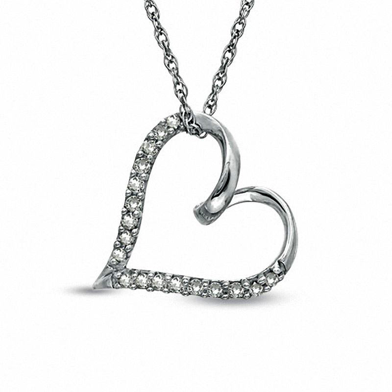 0.1 CT. T.W. Natural Diamond Twirl Tilted Heart Pendant in Sterling Silver