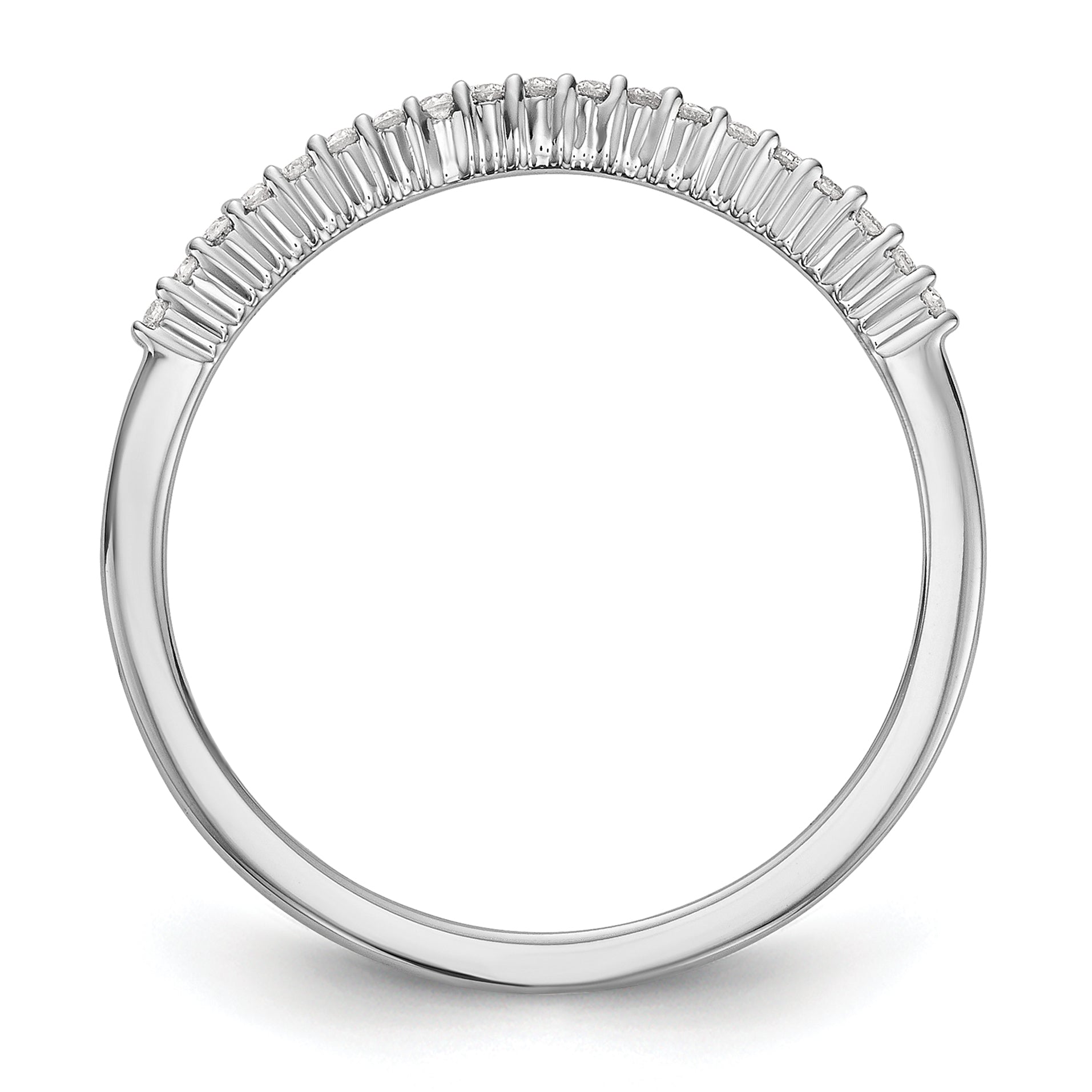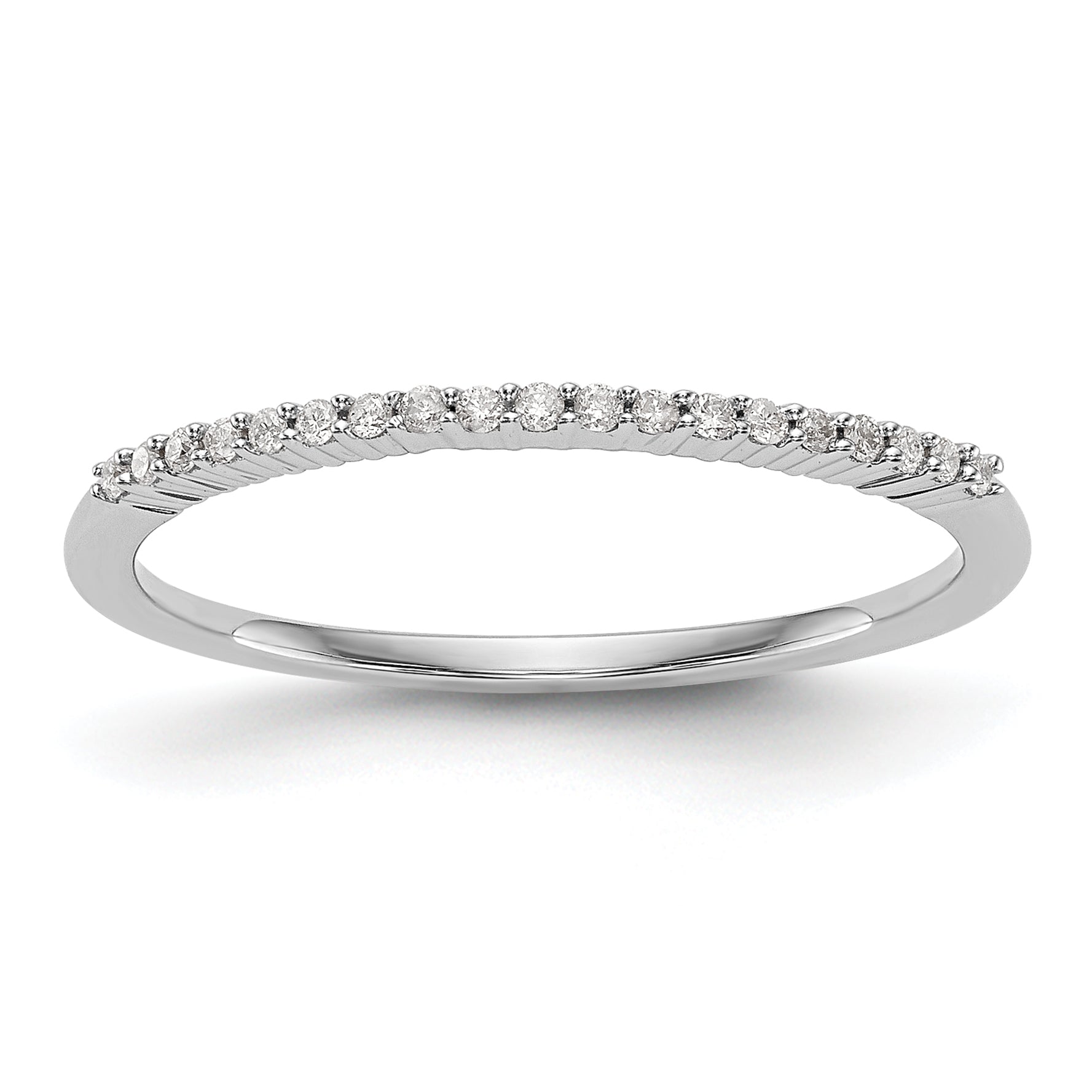 This ring is made of real 14K white gold and features high-quality cubic zirconia stones. It's available in different gold colors and can also be upgraded with natural diamonds upon request. It comes ready to gift and with a 30-day money-back guarantee. The band is thin and has a polished finish with a closed back design. It's perfect for weddings, anniversaries, or everyday wear.