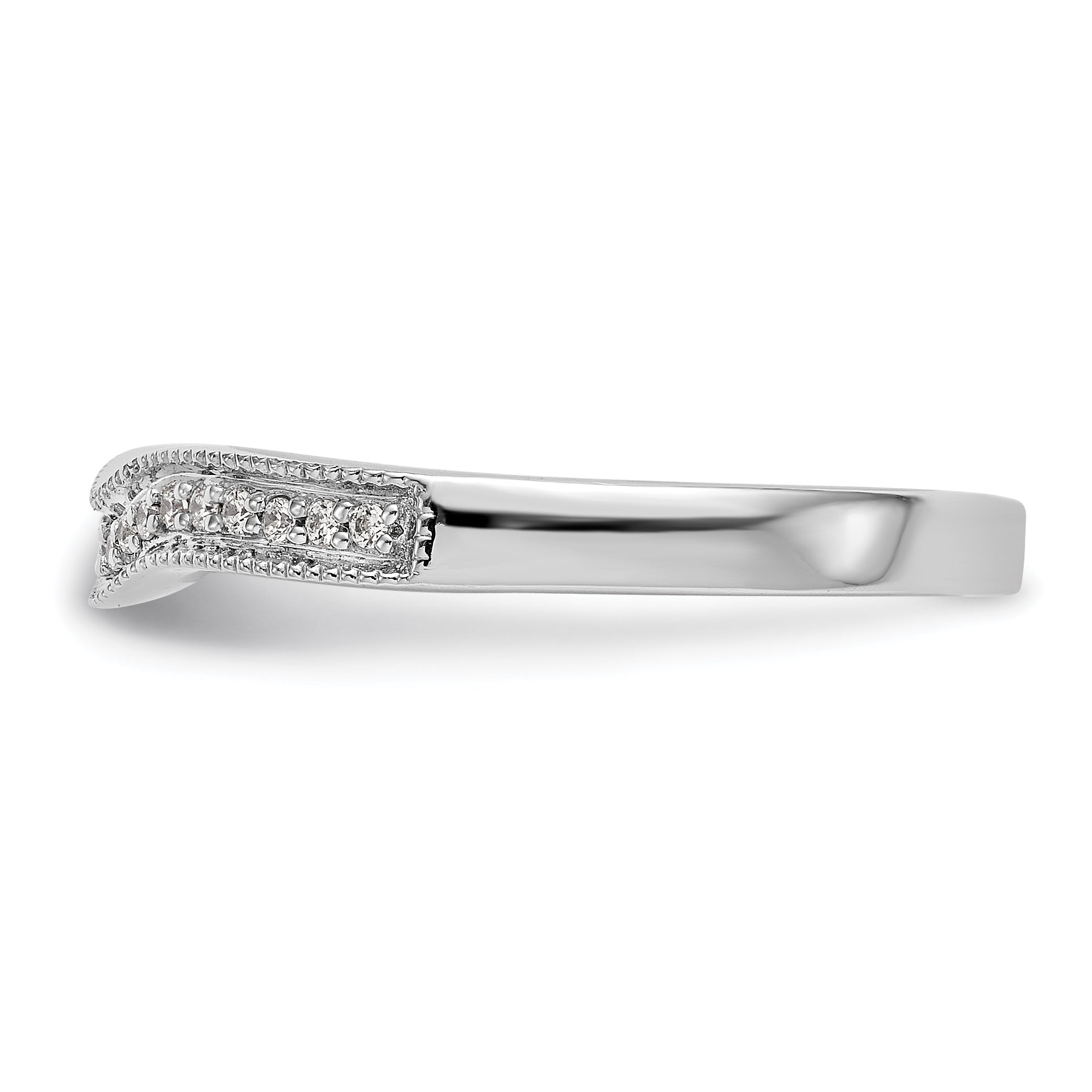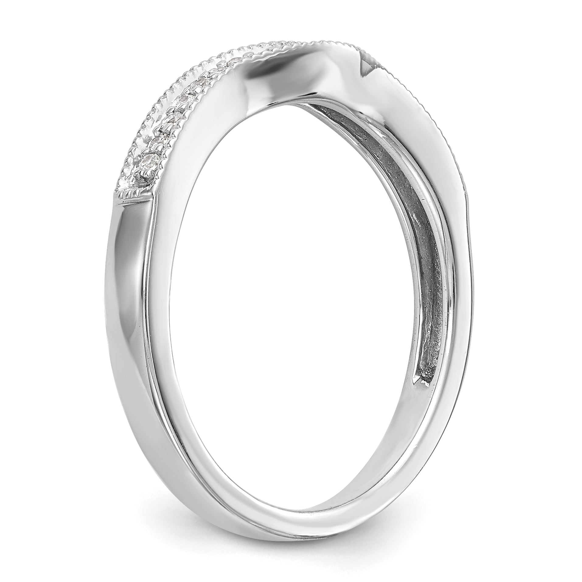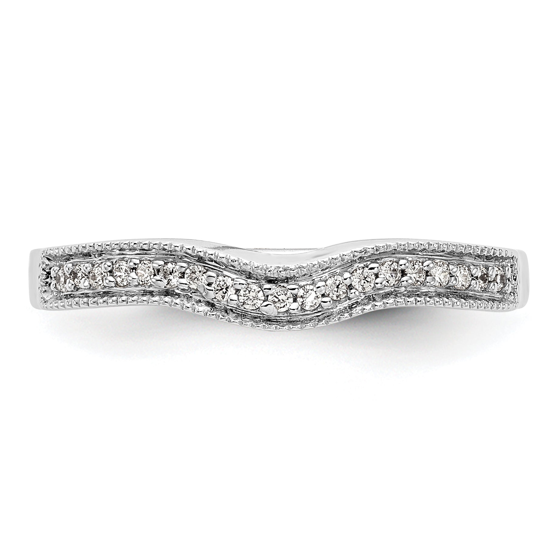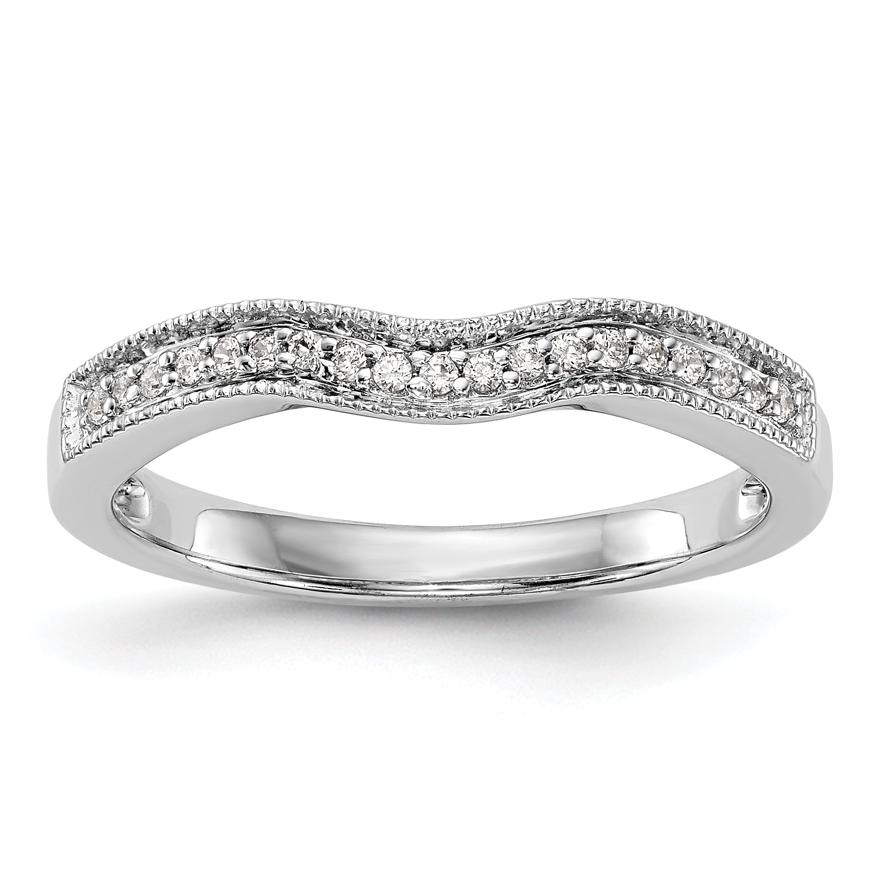 This is a solid 14k white gold wedding band ring with a 0.10 carat cubic zirconia stone. It is stamped with 14k as a symbol of authenticity and crafted with high-quality gold that will not fade. The ring is perfect for everyday wear and can also be used as a vacation or promise ring. The 19 CZ stones are hand-set and high polished by experienced jewelers. The ring comes with a 30-day hassle-free money-back guarantee and a complimentary gift box. The band width is 3 to 2 mm, and the stone size is 1 mm. It's a great gift for occasions like birthdays, anniversaries, weddings, or just to say "I love you" to someone special.