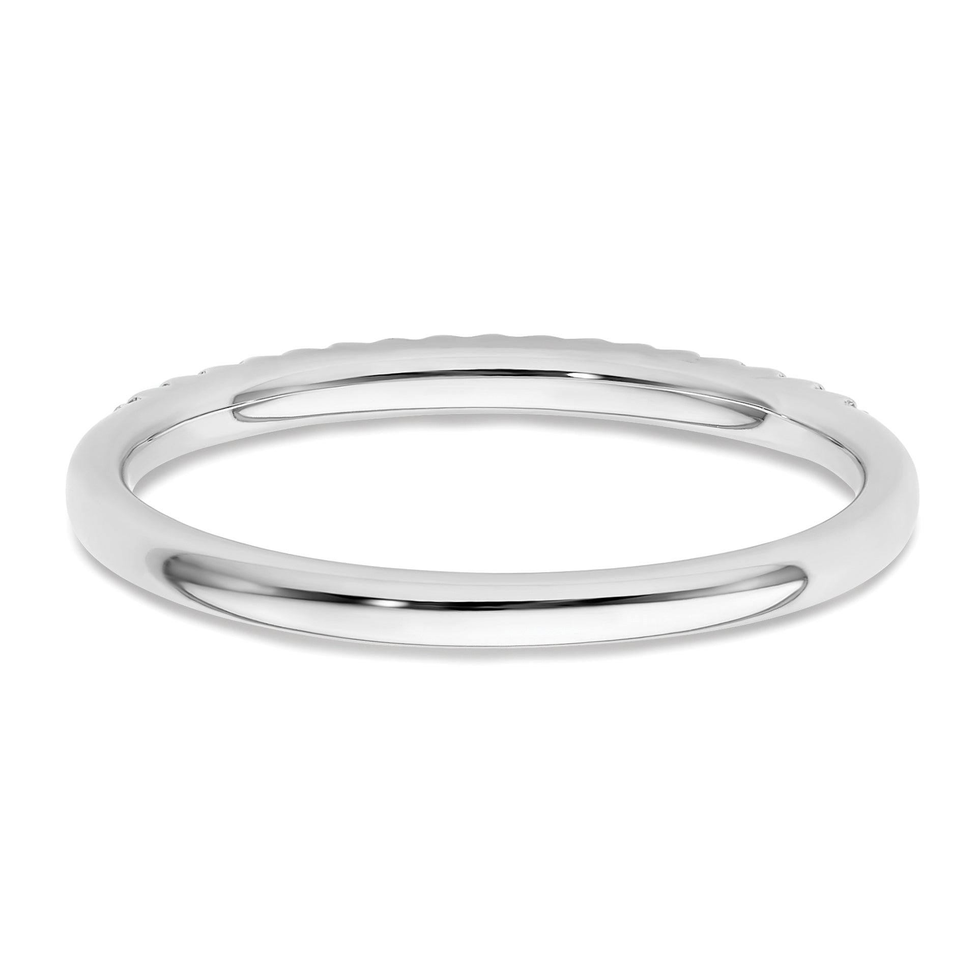 Get yourself or your loved one this beautiful, solid gold wedding band that boasts both style and comfort. The closed back and synthetic stone creation method ensure that this ring is as durable as it is elegant. Enjoy the luxury of a real gold ring with the added sparkle of cubic zirconia or upgrade to natural diamonds for an even more stunning look.