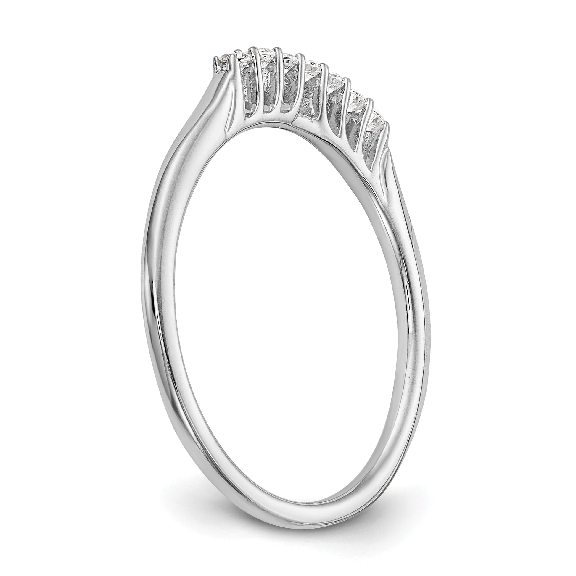 Your satisfaction is our top priority, and we offer a hassle-free, 30-day money-back guarantee on your purchase. The ring comes in a complimentary gift box, and we are a USA based company that prides itself on superior customer service. This timeless piece features seven CZ stones with a weight of 0.015 ct and a tapered band width of 1.5 to 1.2 mm. It is sizeable and complete with rounded edges and a closed back. Order today and make a statement with this gorgeous 14k white gold wedding band ring with CZ stones that will never go out of style!