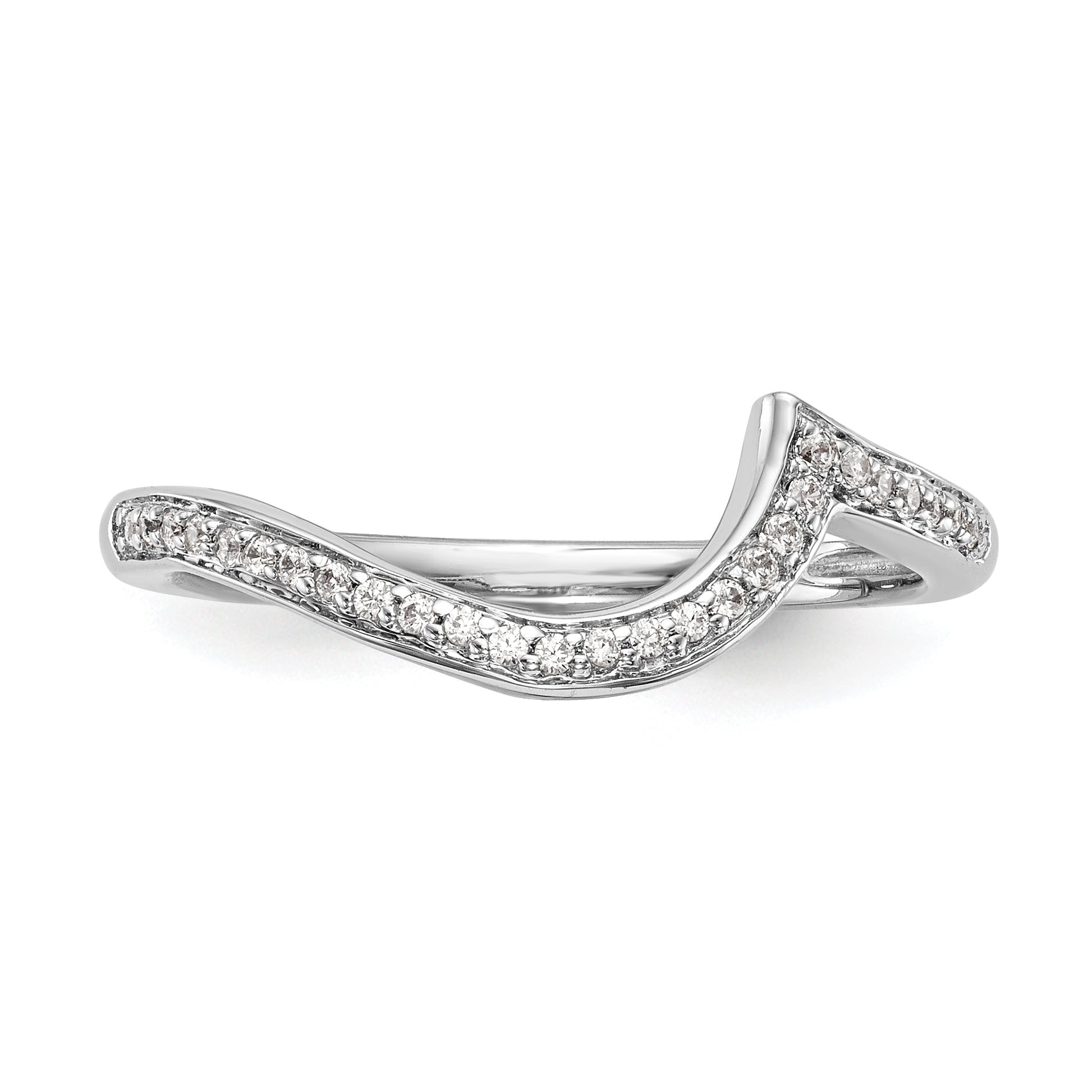 This wedding band has a tapered band width ranging from 1.7 to 2.0mm, and features 3 round-cut 1mm CZ stones and 24 round-cut 0.9mm CZ stones. The size of this ring is adjustable from size 6 up to size 8, with 0.25mm increments. It's also complete with all the stones included, making it a durable and long-lasting investment.