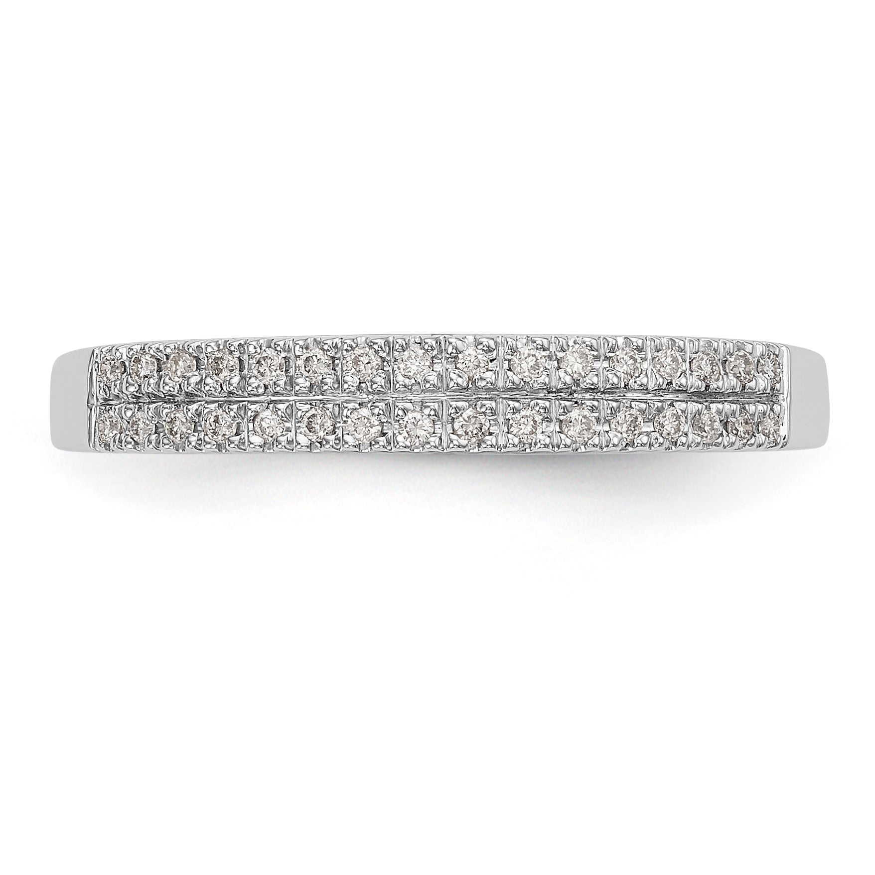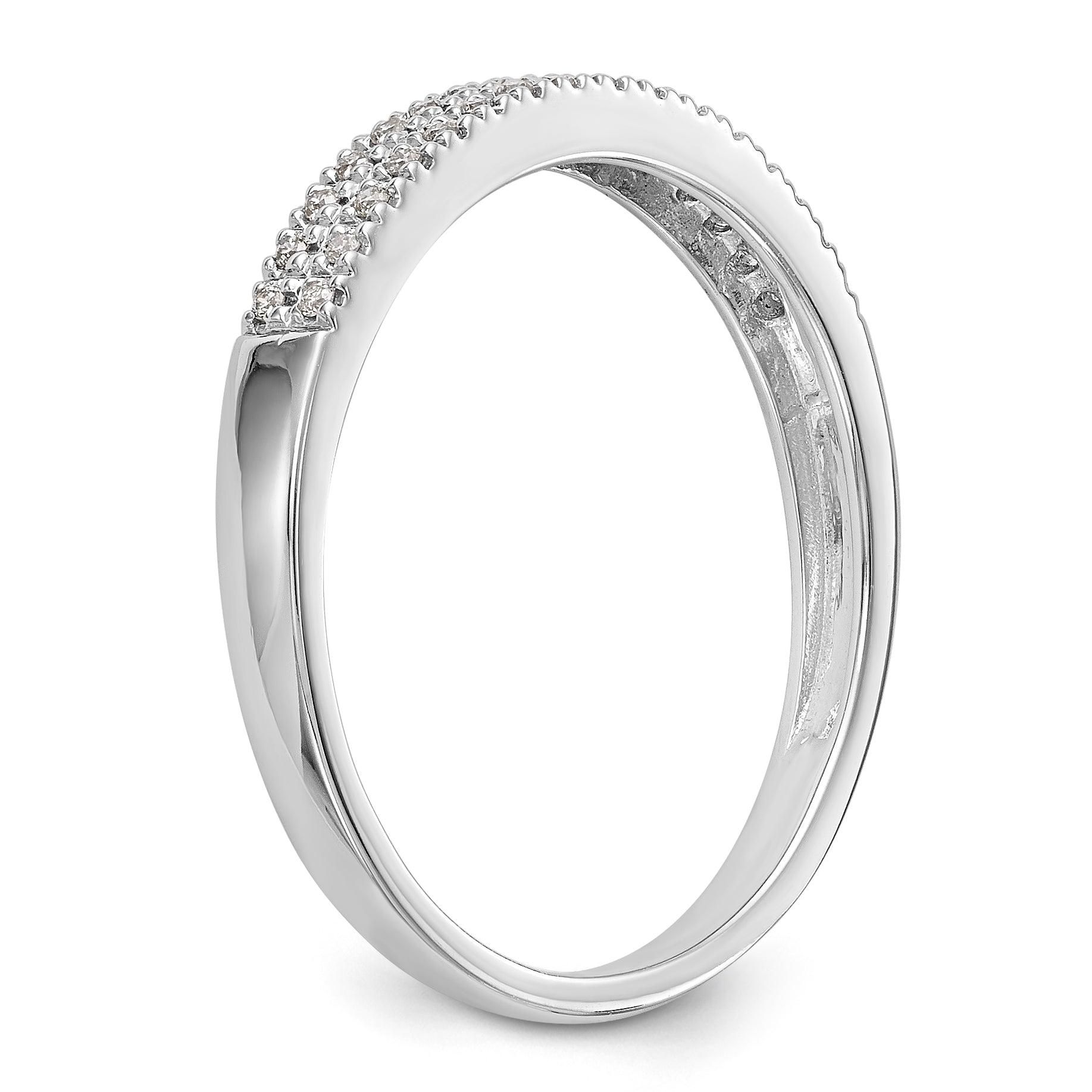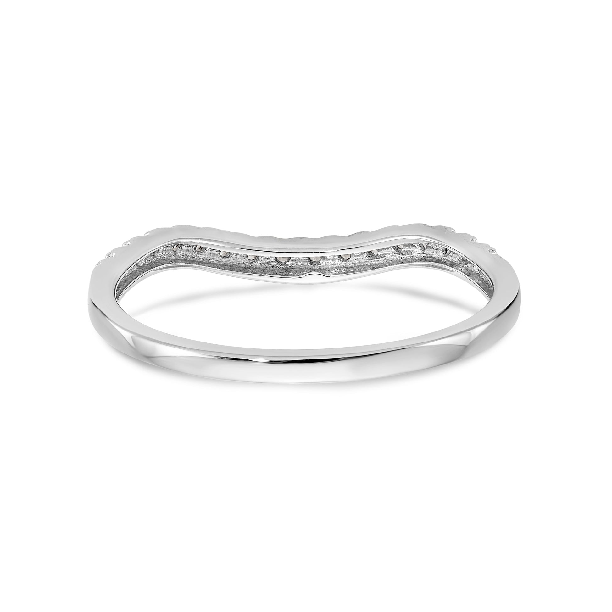 We stand behind our product and offer a hassle-free, 30 day money-back guarantee. The ring comes with a complimentary gift box and our excellent customer service. The band width tapers from 3mm to 1.7mm, with 32 CZ stones that weigh a total of 0.12ct. The band is complete with all stones included and can be sized up or down in increments of 0.25. This solid, polished ring features a closed back and is not recommended for engraving.