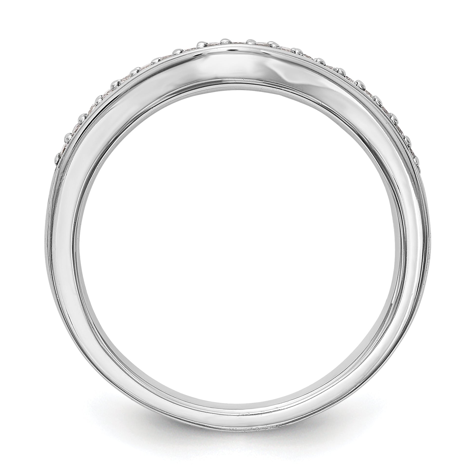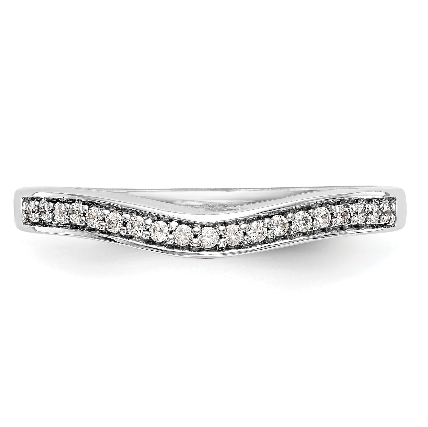 The band width of the ring is 2.4 to 1.7 mm (tapered), and it is sized from 6 to 8 with a sizing adjustment increment of 0.25. The ring is complete with all stones included and features a closed back. Its stone creation method is synthetic.
