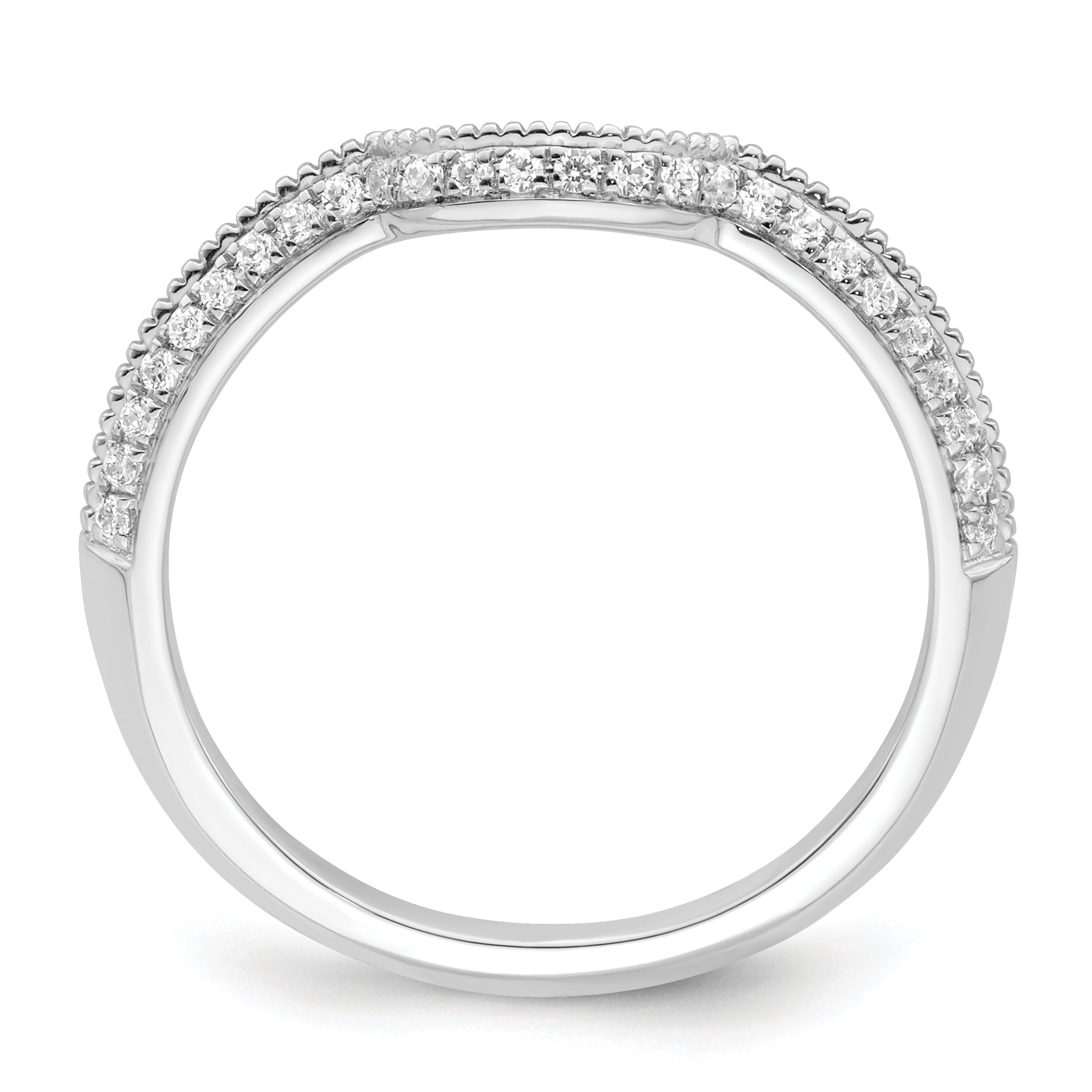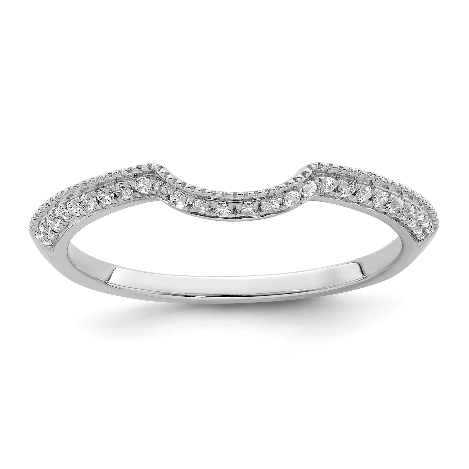 This gold wedding band ring has a band width of 1.3 to 1.4 mm and a tapered thickness of less than 1.5 mm. The 26 CZ stones are prong-set and hand-polished to perfection, adding a touch of elegance and style to this already beautiful design. Sold individually and perfect for women, this ring is a must-have for anyone seeking a high-quality, real gold piece of jewelry.