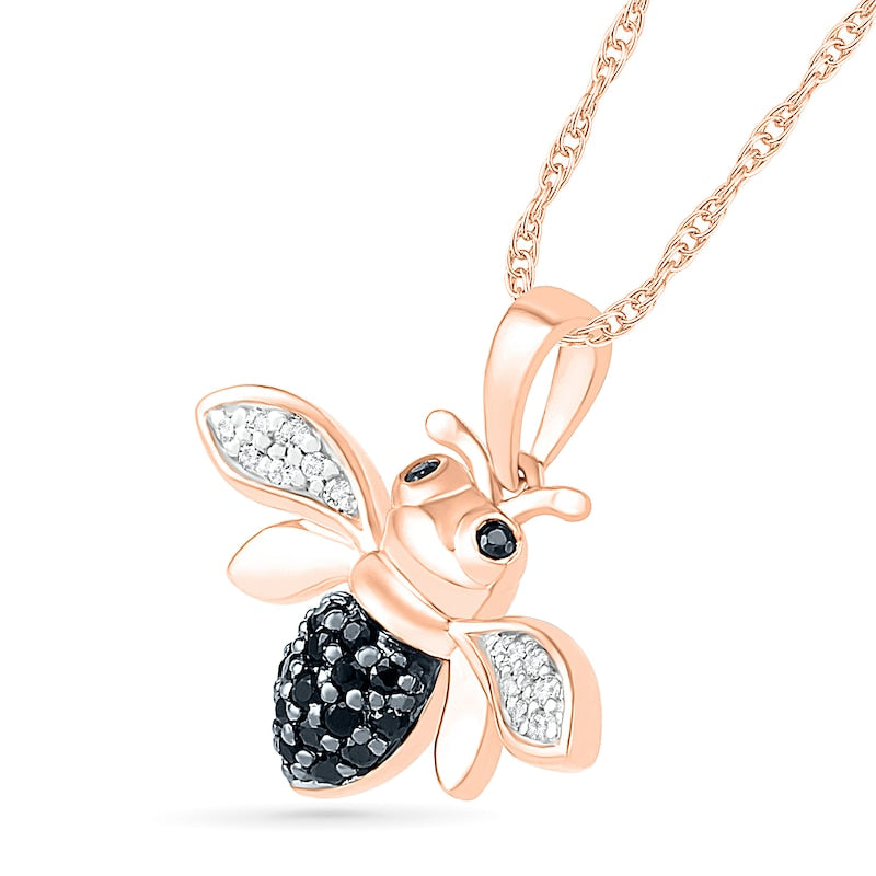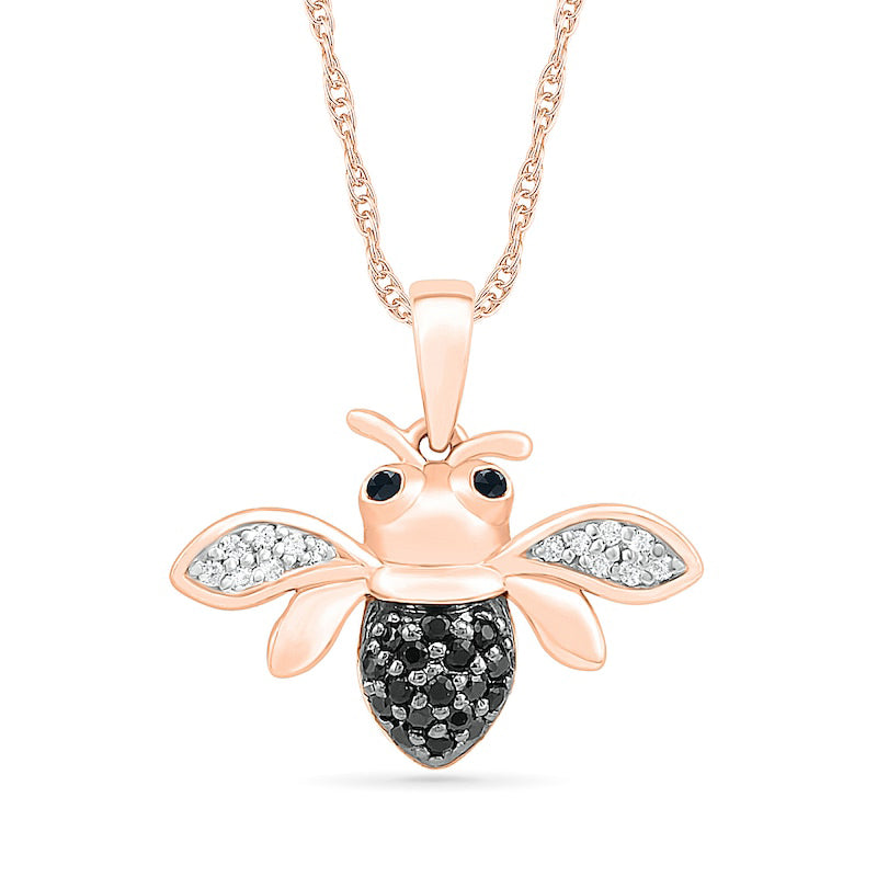 0.13 CT. T.W. Black Enhanced and White Natural Diamond Bee Pendant in 10K Rose Gold