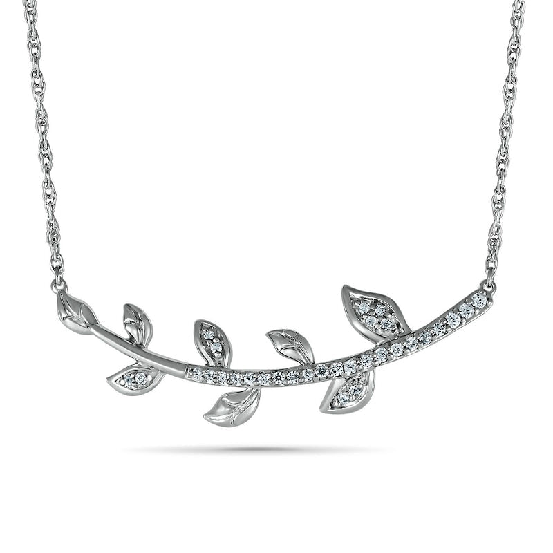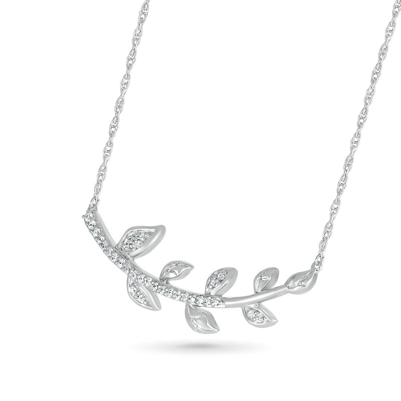0.13 CT. T.W. Curved Eight Leaf Branch Necklace in Sterling Silver