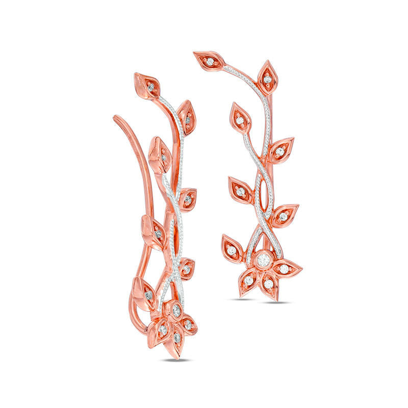 0.13 CT. T.W. Diamond Vine Crawler Earrings in 10K Rose Gold