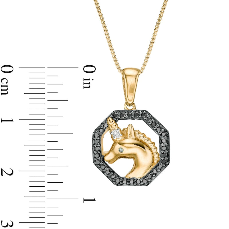 0.13 CT. T.W. Enhanced Black, Blue, and White Natural Diamond Unicorn Head Pendant in Sterling Silver with 14K Gold Plate