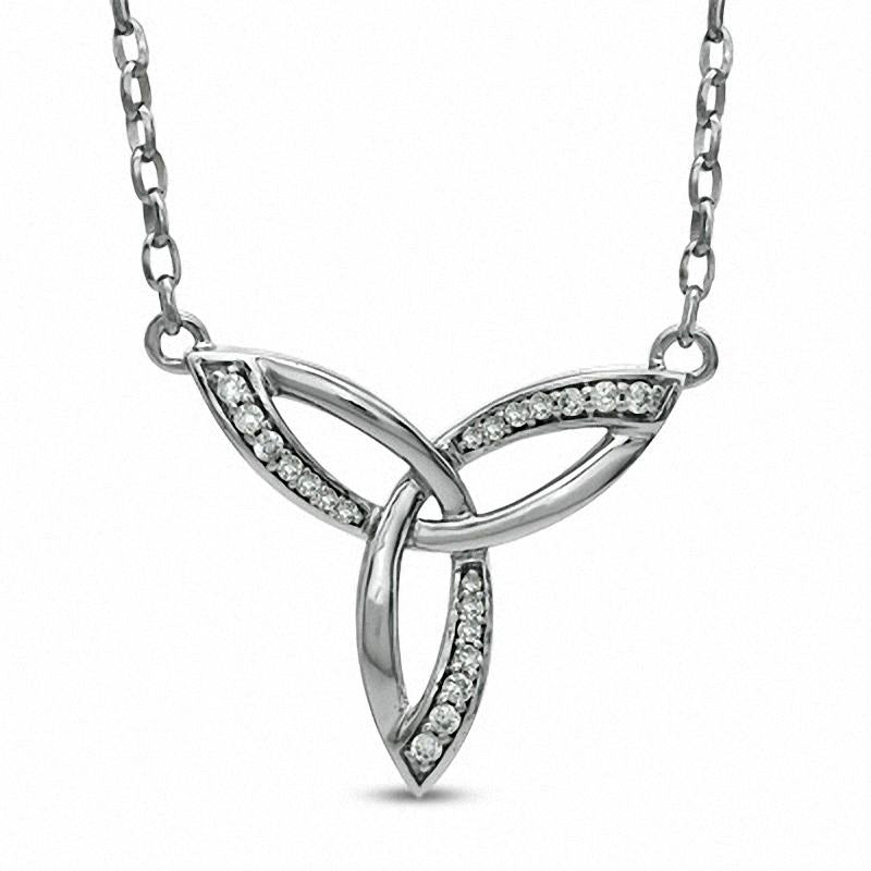 0.13 CT. T.W. Natural Diamond Celtic Trinity Knot Necklace in Sterling Silver
