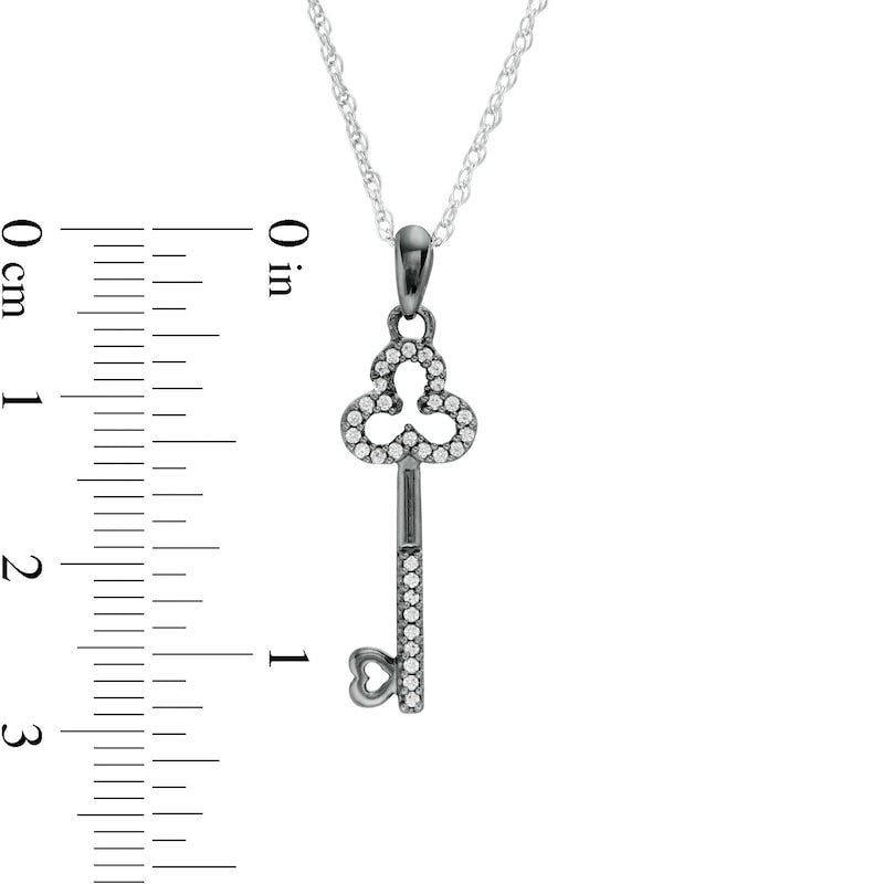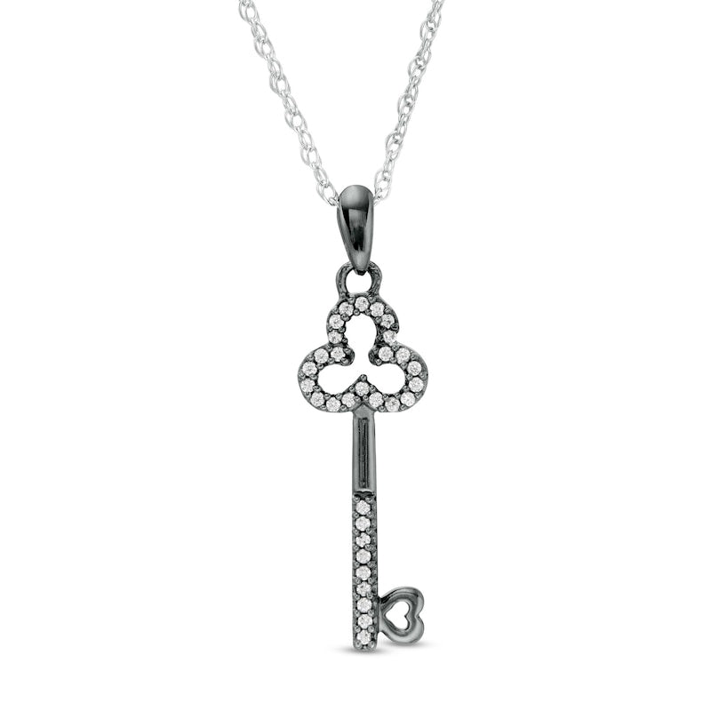 0.13 CT. T.W. Natural Diamond Clover-Top Key with Heart Pendant in Sterling Silver and Black Rhodium