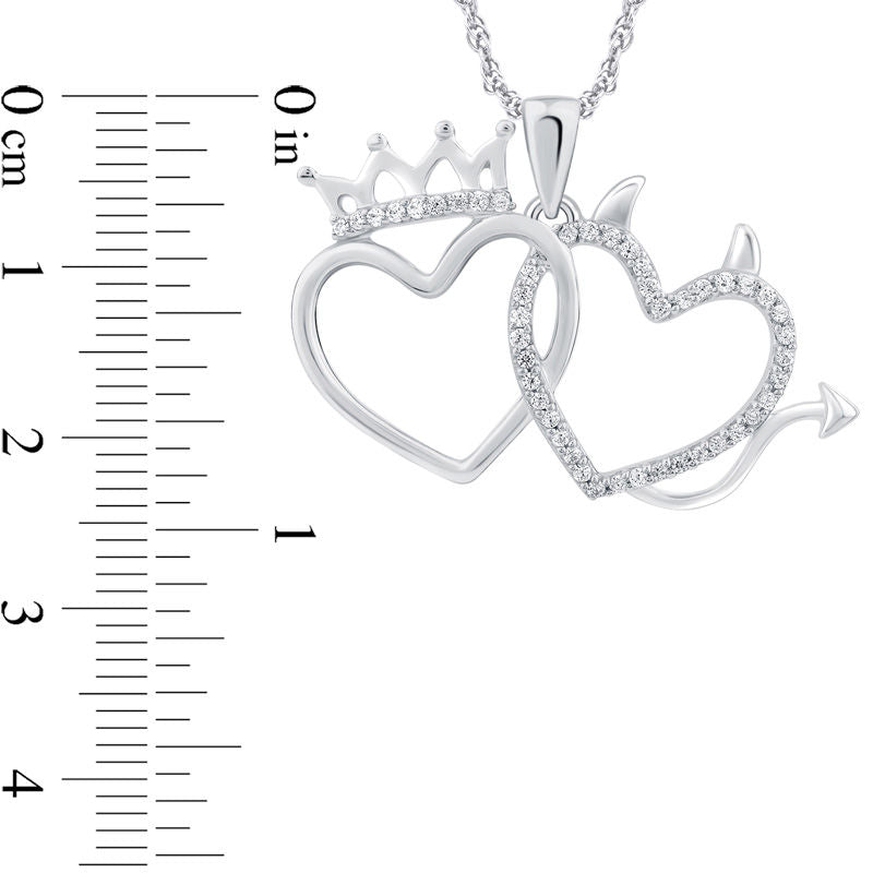 0.13 CT. T.W. Natural Diamond Crown and Devil Double Heart Pendant in 14K Yellow Gold